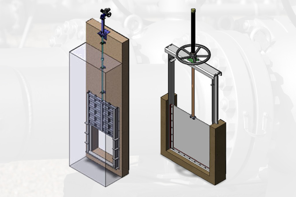 - Ove zidne zapornice su konstruirane za ugradnju na otvore u zidu. Otvor može biti pravokutni, okrugli ili kvadratni, zapornica ima 4-strano brtvljenje.